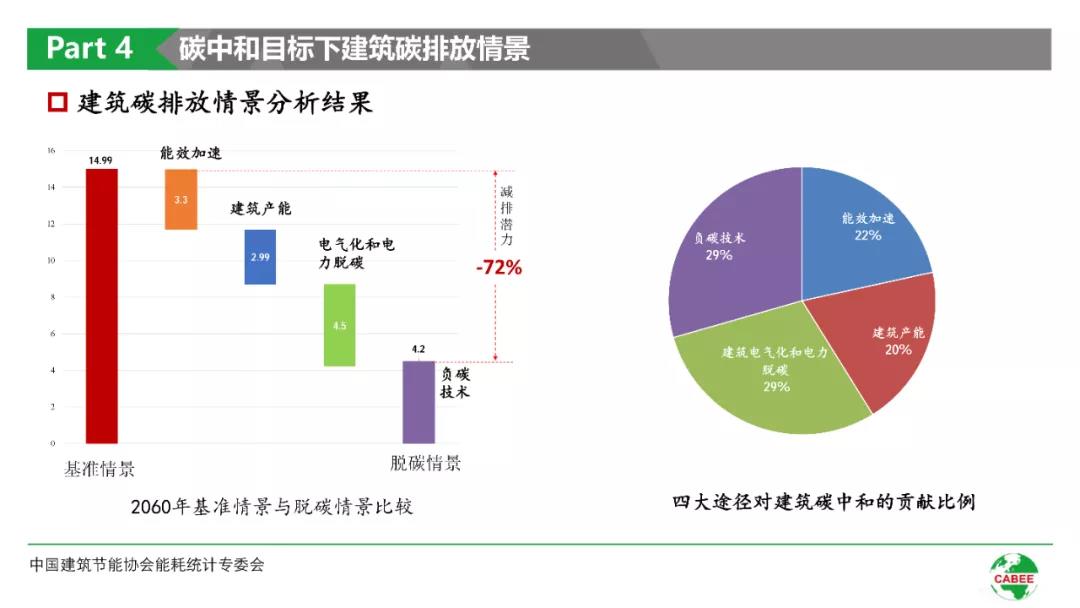 根据中国建筑节能协会发布《中国建筑能耗研究报告(2020)》。《研究报告》对建筑全过程能耗和碳排放的测算方法、数据分析以及碳中和目标下建筑碳排放情景进行了介绍。