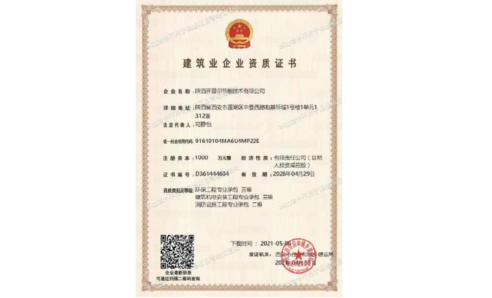 - 开普尔荣获建筑业企业资质证书 2021-05-24